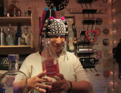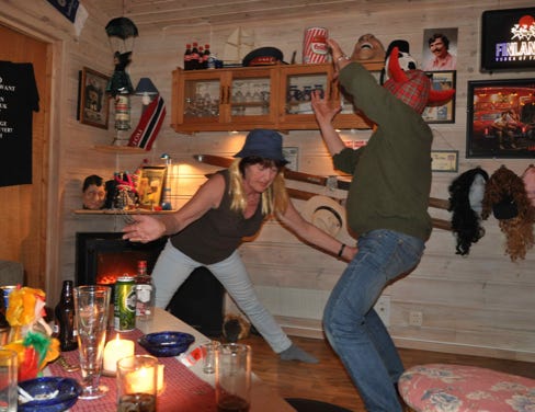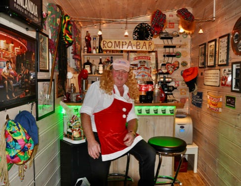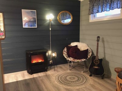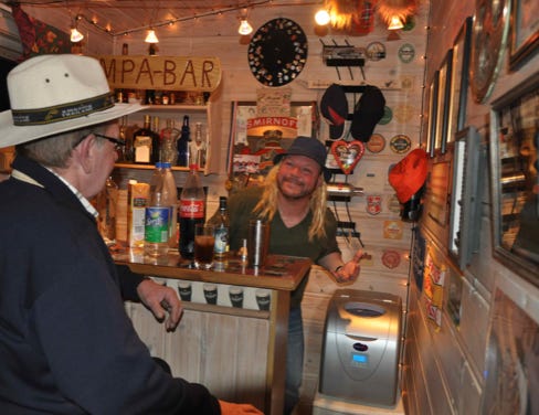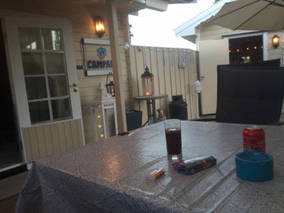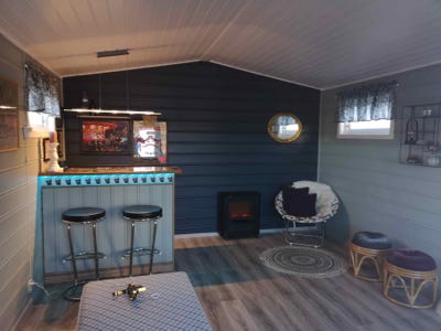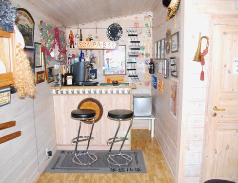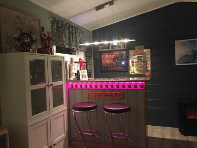 Her koser vi oss med denne enkle puben. Den er innredet med en bardisk og møblert.