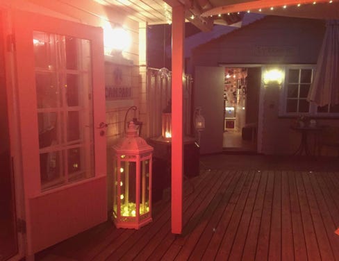 Her koser vi oss med denne enkle puben. Den er innredet med en bardisk og møblert.